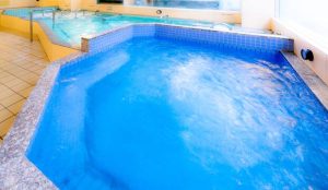 サウナで熱されたあとはご褒美の水風呂。勢いよく入ったものの、とても冷たい!温度を見てると15度とかなり低めに設定されていました。4〜5人くらいは入ることができるので待つといったことはなさそう。寒過ぎて入れない!という方はこの後紹介する「屋外プール」がおすすめ。