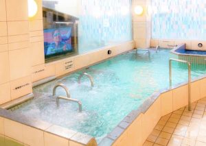 ここからはお風呂の紹介!お風呂は2種類あり中温風呂、炭酸泉となっています。中温風呂は41度と中々の熱さがあり、TVもあるので見過ぎてのぼせないか注意してください。ちなみに軟水となっております。